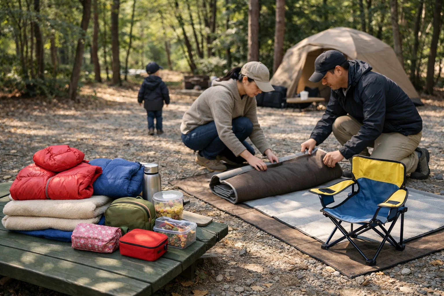* 키즈 캠핑 체어/테이블(아이 자리 고정) * 모래놀이/자연 관찰 키트(과한 장난감보다 “작은 도구”가 오래 갑니다) * 사이트 바닥 매트(앉고 놀 공간 확보) * 간단한 보드게임/스티커북(밤용 조용한 놀이)