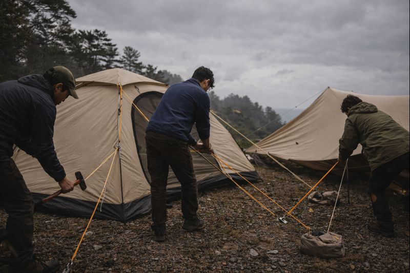 11) 팩은 강풍용(길이/형태)으로 교체할 가치가 큼: 지면이 단단할수록, 바람이 강할수록 팩 선택이 결과를 바꿉니다. 12) 팩은 ‘각도’가 중요: 땅에 수직으로 박기보다, 로프 당김 방향을 고려해 적절히 눕혀 박으면 뽑힘 저항이 커집니다. 13) 박는 깊이와 지면 확인: 파쇄석은 겉이 단단해도 아래가 느슨할 수 있고, 잔디는 비 오면 쉽게 헐거워질 수 있습니다. 14) 핵심 팩부터 박는 순서: 바람 받는 면의 코너 → 중앙(폴대 라인) → 반대편 순으로, 구조를 먼저 잡고 디테일을 맞춥니다. 15) 팩이 불안하면 스톤백/추가 하중: 팩 주변에 돌을 올리는 방식(스톤백)은 강풍에서 꽤 효과적입니다(지형 허용 시). 16) 팩을 억지로 뽑았다가 지면이 헐거워지는 것을 주의: 위치 변경은 신중히 하고, 필요하면 새 위치에 박는 것이 낫습니다.