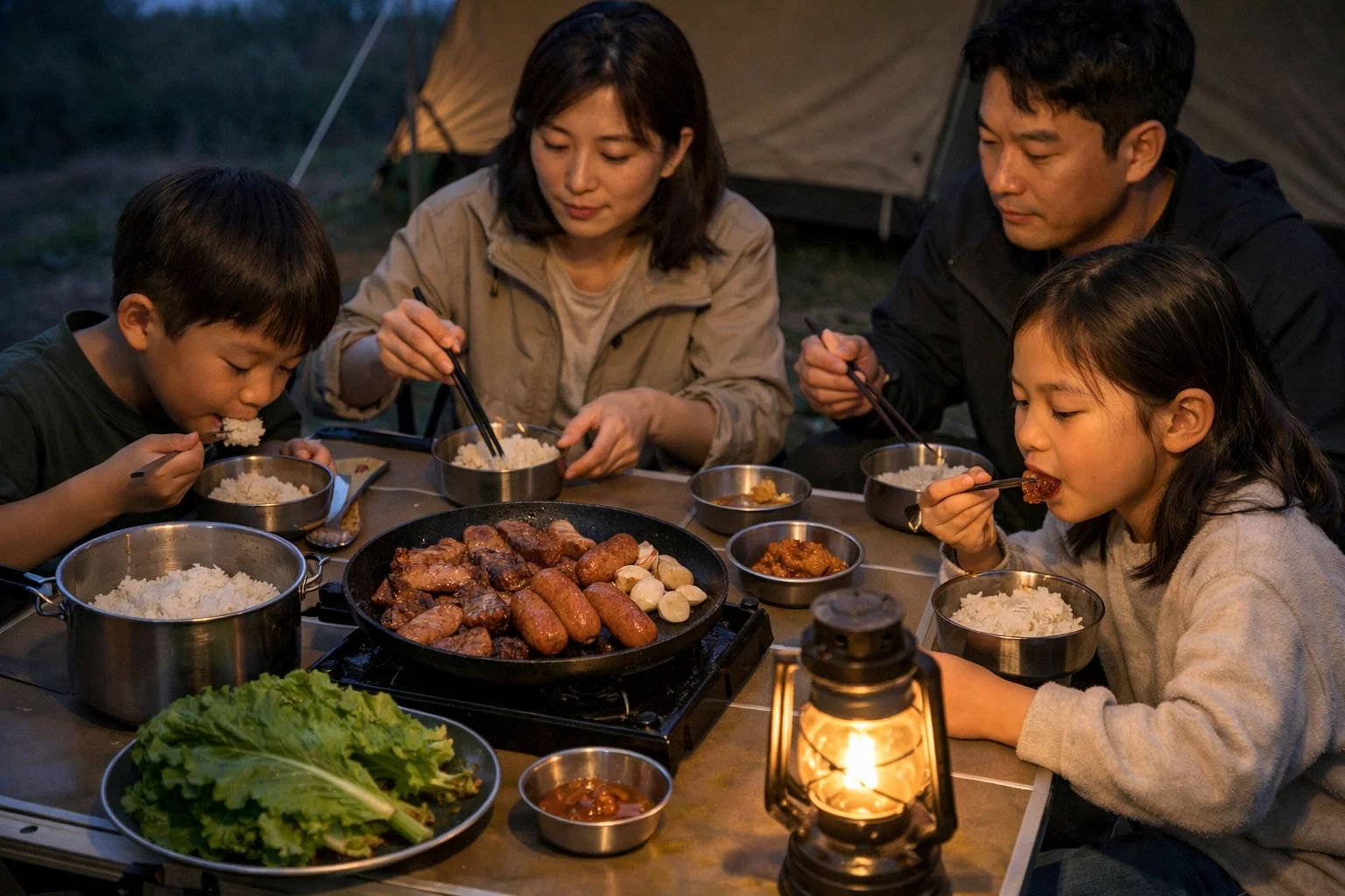 첫 캠핑은 남기지 않는 게 목표입니다. 부족하면 휴게소/편의점이 대안이 됩니다. - 비 오는 날에도 같은 식단이 가능한가요?
