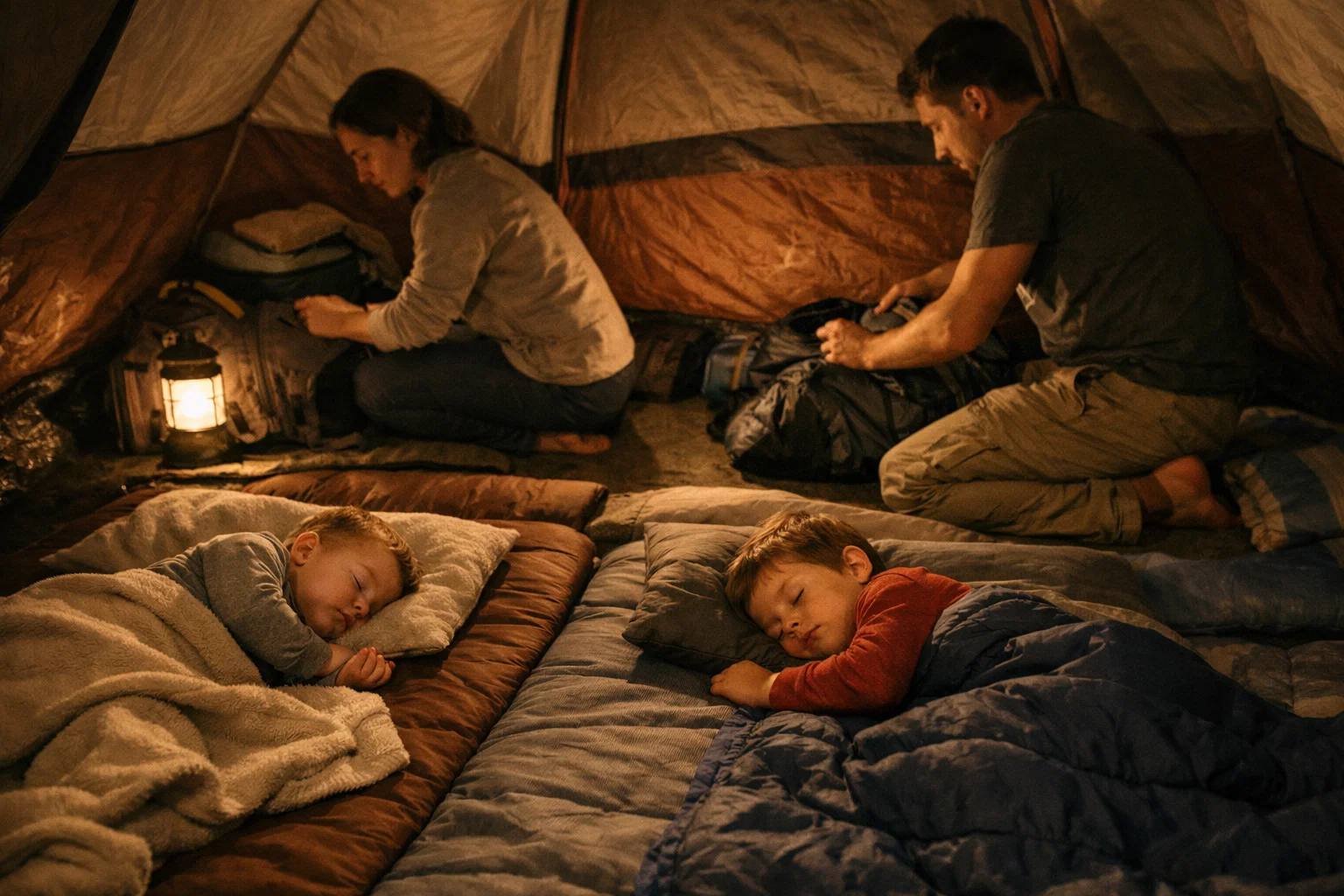아이 수면에서 가장 중요한 건 바닥 냉기 차단이고, 그 다음이 몸의 보온, 마지막이 공기(텐트 내부)입니다. 조명은 ‘편안함’과 ‘안전 동선’을 동시에 잡아야 합니다.