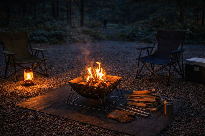 화로대는 가능한 한 평평한 곳에 두고, 텐트·타프 원단·수납박스 등 가연성 물질과 거리를 확보해야 합니다. 초보에게는 “생각보다 멀리”가 맞습니다. 불티는 바람을 타고 의외로 멀리 날아갑니다. 특히 건조한 계절에는 불티가 잔디나 낙엽에 닿을 때 위험할 수 있습니다. 캠핑장 규정이 있다면 그 규정을 최우선으로 따르고, 주변이 낙엽이 많다면 화로대 아래에 불연 매트를 사용하는 것이 좋습니다.
