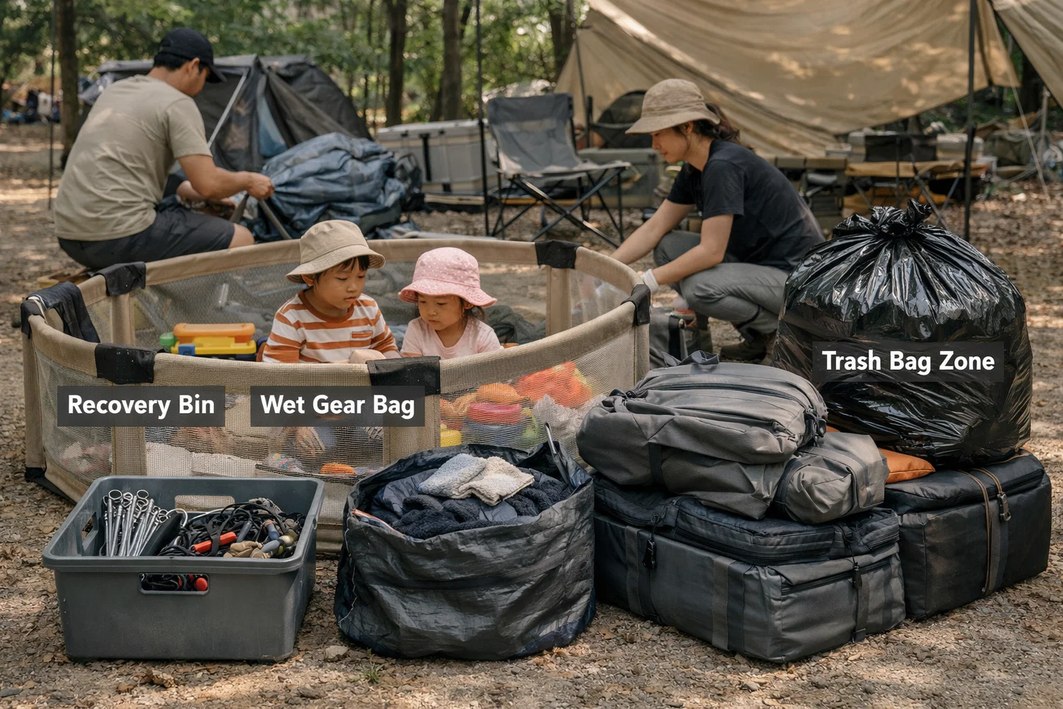 목표: 철수 시작 10분 안에 “쓰레기/부속/젖은 것”이 구역에 들어가야 빨라집니다.